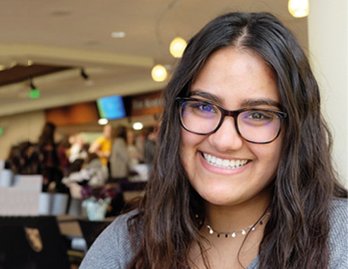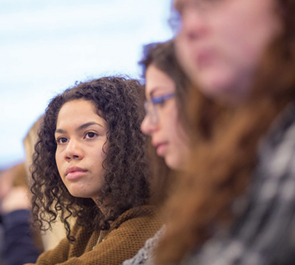 A female student listens in class
