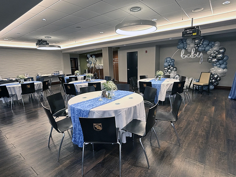 A/V Features: Built-In Projector, Wireless Microphones (Lapel and Handheld Microphones), Podium Microphone, Podium, Wireless Internet.