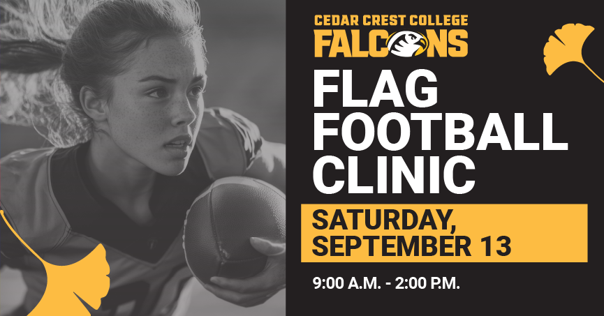 Get ready to move, lead, and shine at Cedar Crest College’s Flag Football Clinic—a hands-on, high-energy experience designed for girls entering 9th grade and up. Whether you’re new to the sport or ready to take your game to the next level, this clinic will fuel your passion for athletics, leadership, and community.
