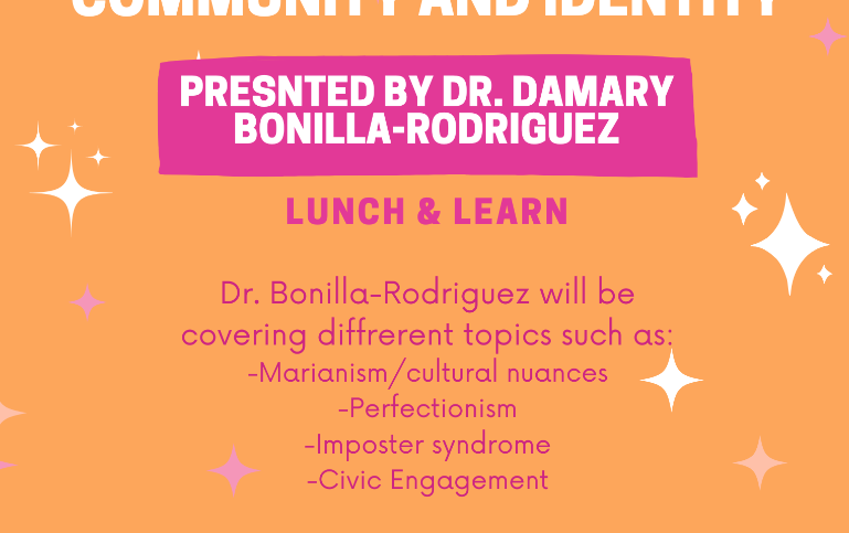 Join Dr. Damary Bonilla-Rogriguez for a Lunch & Learn covering marianism/cultural nuances, perfectionism, imposter syndrome, and civic engagement. We can’t wait to see you all!