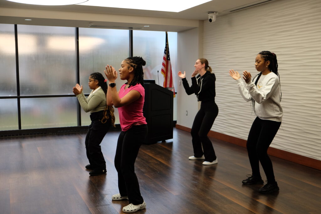 The morning started with impactful and powerful words from Student Government Association President Noor Hussain, ‘25, and a Step Dance performance choreographed by Corinne Mundy, ‘24, performed by herself, Jahniya James, ‘26, Elayah Toney, ‘26, and Erika Butler, ‘27. Further highlights included keynote speaker Dr. Damary Bonilla-Rodriguez, spoken word poetry performed by Dieruff High School group Spittin’ Truth, and closing remarks from President Meade.